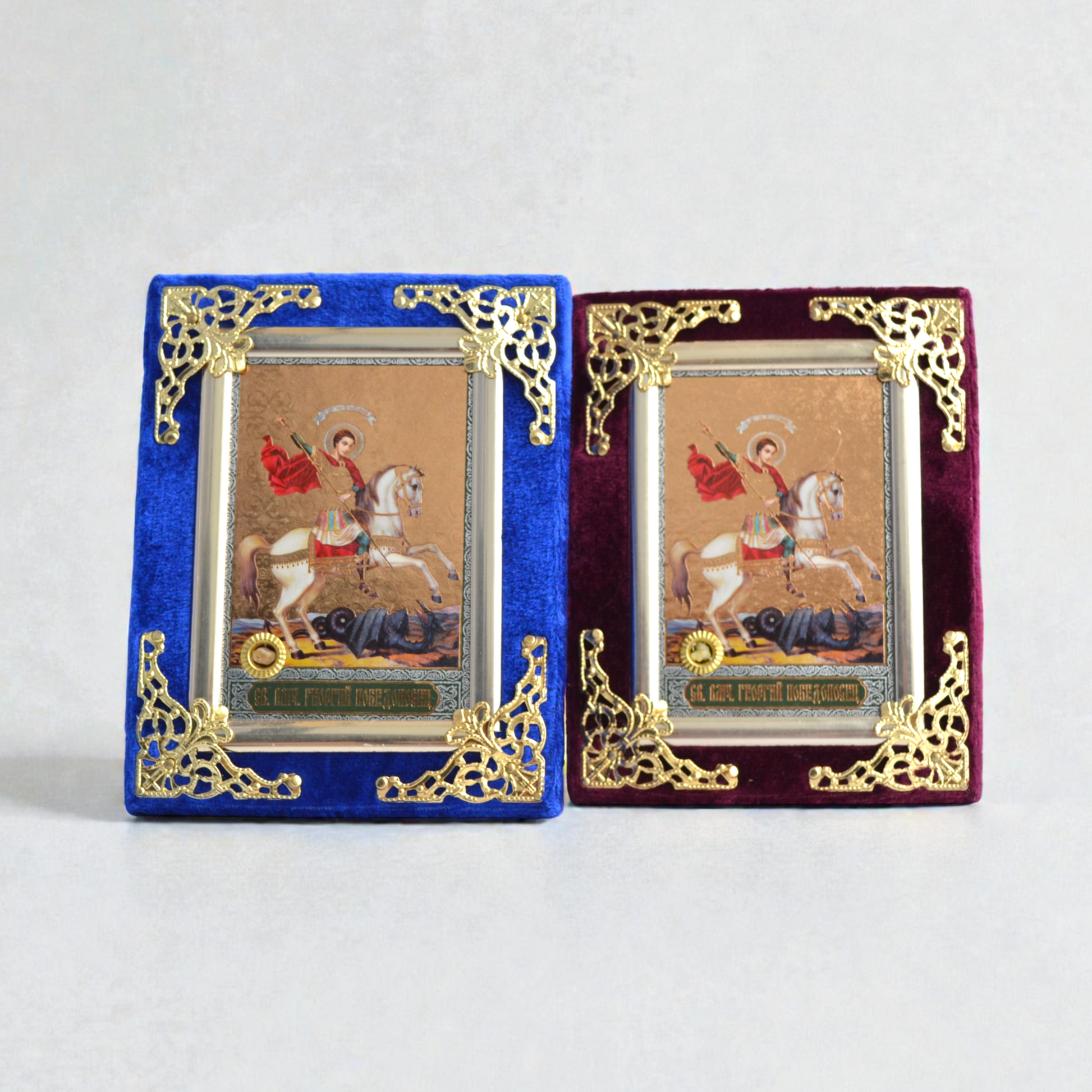 Saint George the Victorious Icon in Velvet Frame 9x12 cm